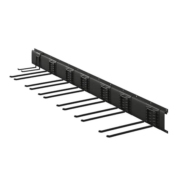 • Wall rack with 6-two-pronged hooks for skis, snowboards, or tools