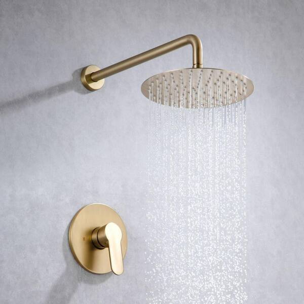 10 in. Shower Head Single-Handle 1-Spray Round High Pressure Shower Faucet in Brushed Gold (Valve Included)