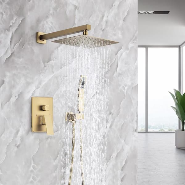 10 in. Shower Head Single-Handle 1-Spray Square High Pressure Shower Faucet in Gold Color (Valve Included)