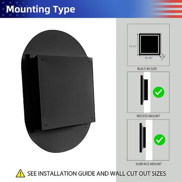20 in. W x 34 in. H Oval Metal Medicine Cabinet with Mirror