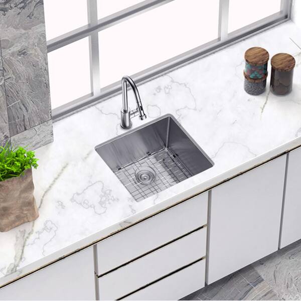 21 in. L x 18 in. W Undermount Single Bowl 16-Gauge Stainless Steel Kitchen Sink in Brushed Nickel
