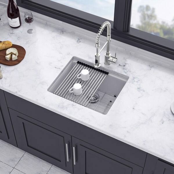 21 in. L x 18 in. W Undermount Single Bowl Quartz/Granite Composite Kitchen Sink with Workstation in Matte White