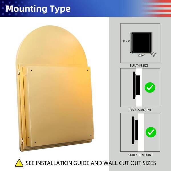 24 in. W x 36 in. H Arched Metal Medicine Cabinet with Mirror