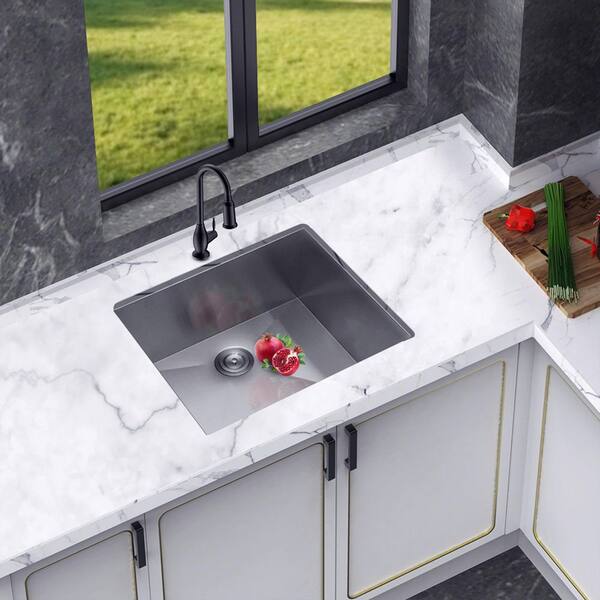 26 in. L x 18 in. W Undermount Single Bowl 18-Gauge Stainless Steel Kitchen Sink in Brushed Nickel