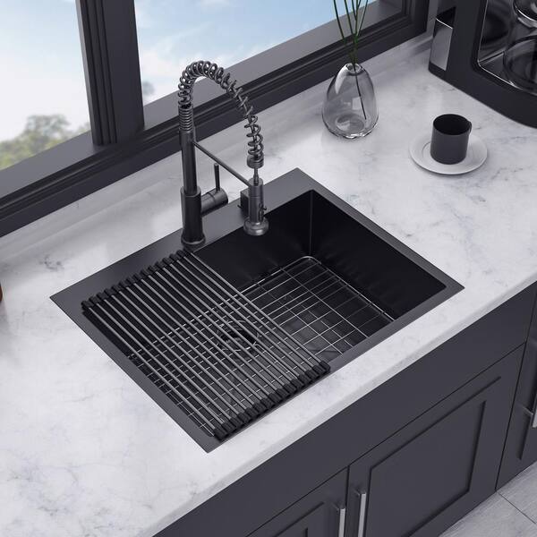 28 in. L x 22 in. W Drop-in Single Bowl 16-Gauge Stainless Steel Kitchen Sink in Gunmetal Black