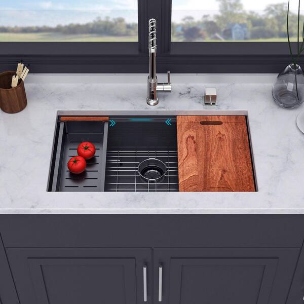33 in. L x 19 in. W Undermount Single Bowl 16-Gauge Stainless Steel Kitchen Sink in Gunmetal Black
