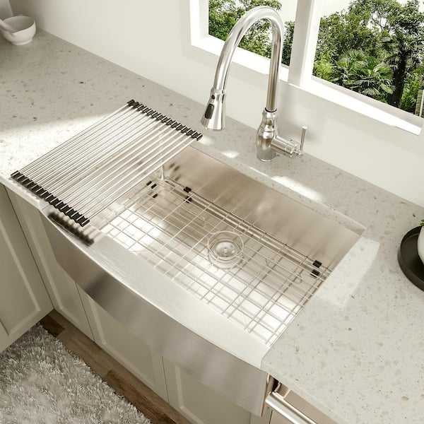 33 in. L x 21 in. W Farmhouse Apron Front Single Bowl 16-Gauge Stainless Steel Kitchen Sink in Brushed Nickel