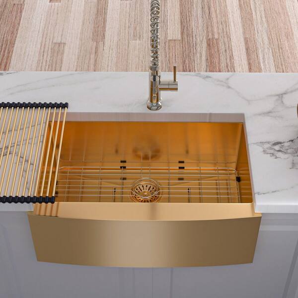 33 in. L x 21 in. W Farmhouse Apron Front Single Bowl 16-Gauge Stainless Steel Kitchen Sink in Gold