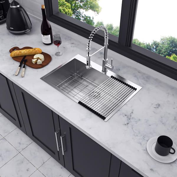 33 in. L x 22 in. W Drop-in Single Bowl 18 Gauge Stainless Steel Kitchen Sink in Brushed Nickel