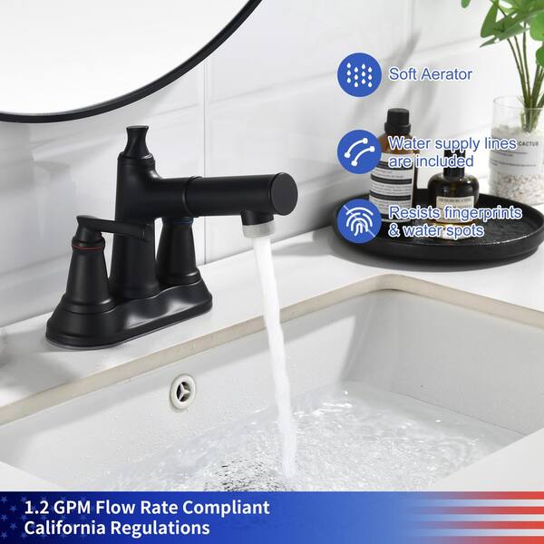 4 in. Centerset Double Handle High-Arc Bathroom Faucet with Pull Out Sprayer, Supply Line Included in Matte Black