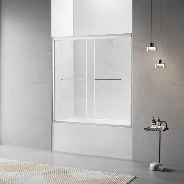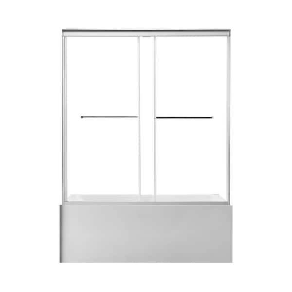 56 in. to 60 in. W x 60 in. H Sliding Framed Shower Door in Brushed Nickel Finish with Clear Glass