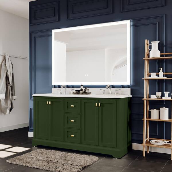 60.6 in. W x 22.4 in. D x 40.7 in. H Double Sink Freestanding Bath Vanity in Venetian Green with White Marble Top