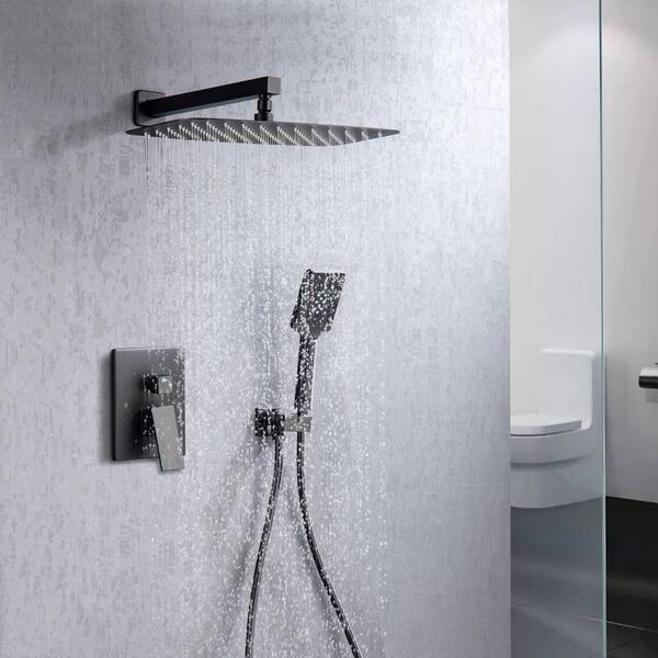 Oval Shower Head Single-Handle 1-Spray Pressure Balance Shower Faucet in Matte Black (Valve Included)