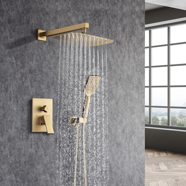 Single-Handle 1-Spray Oval Pressure Balance Shower Faucet with Shower Head in Brushed Gold (Valve Included)