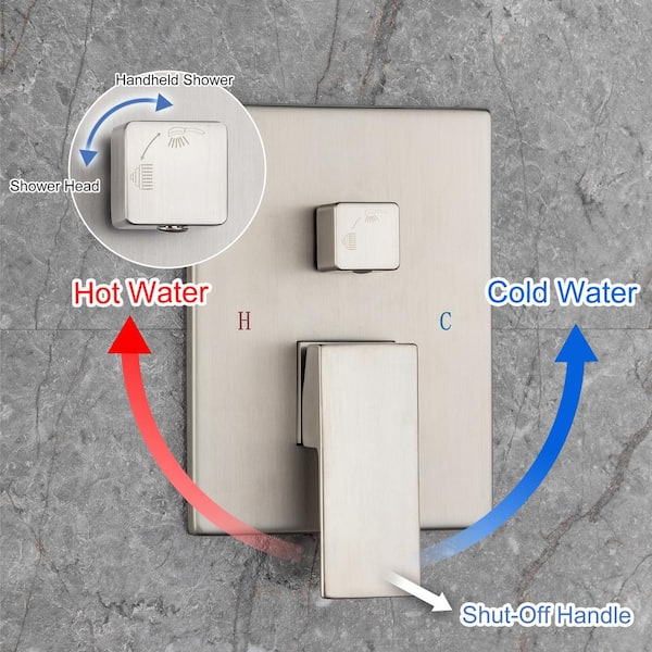 Single-Handle 1-Spray Square High Pressure Shower Faucet with 10 in. Shower Head in Brushed Nickel(Valve Included)