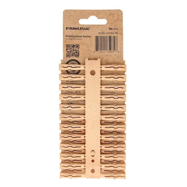 1/4" Uno TIMBER Multi-Purpose Drywall Anchors Push-In Ribbed 19lbs. (Clip of 96)