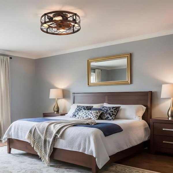 19.7 in. Indoor Black Low Profile Cage Ceiling Fan with Remote Control, Bulb Included
