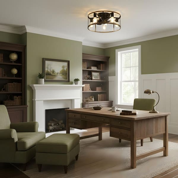 20 in. Indoor Black Caged Ceiling Fan with Light Kit, Bulb Included