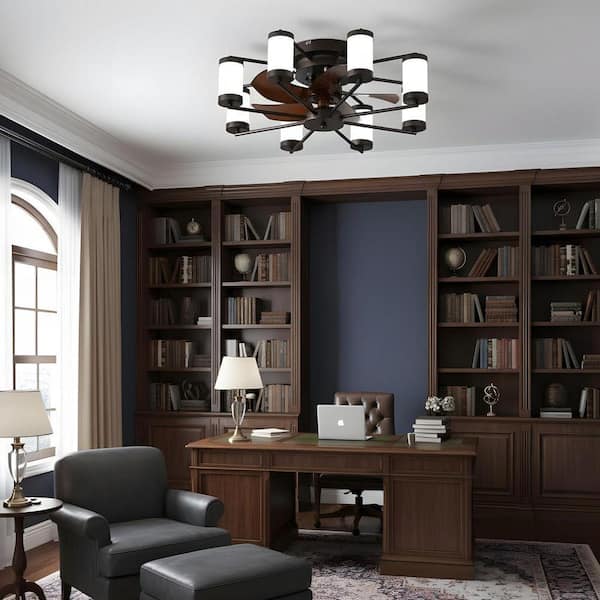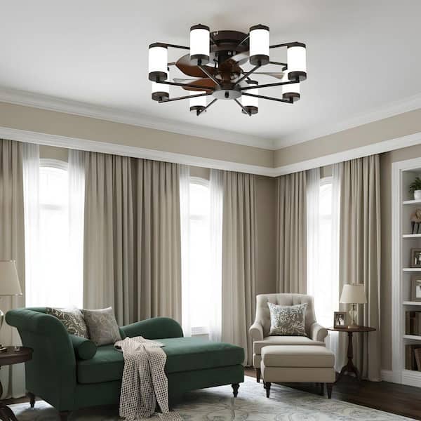 21.7 in. LED Indoor Brown Farmhouse Style Ceiling Fan with Light Kit, Remote Control, Reversible DC Motor