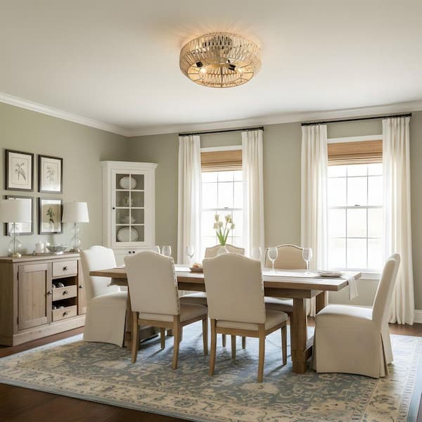 22 in. Indoor Flush Mount Black Boho Style Ceiling Fan with Light Kit, Remote Control, Rattan Accents