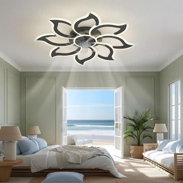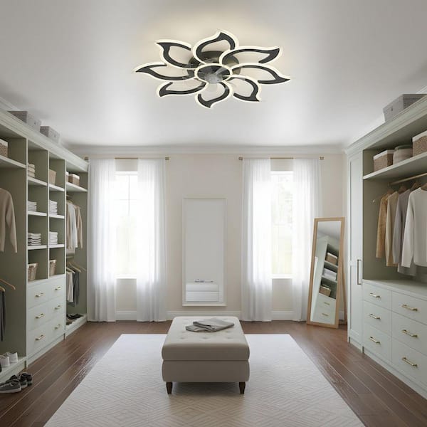 35.4 in. LED Indoor Black Low Profile Ceiling Fan with Light Kit, Remote/APP Controls