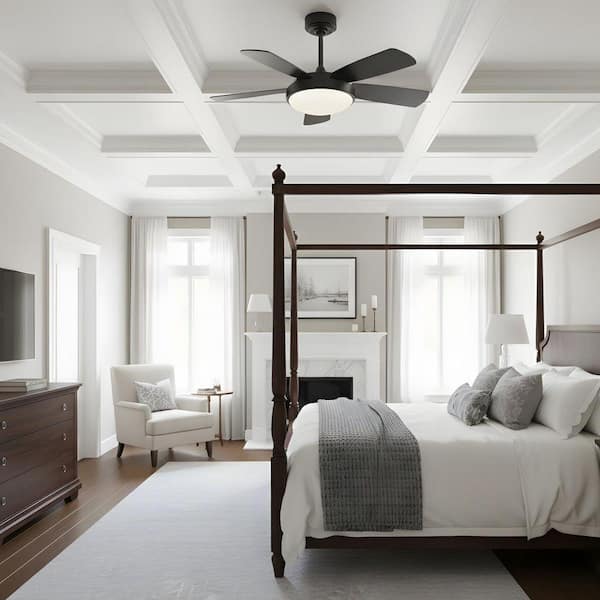 42 in. LED Indoor Black Ceiling Fan with Light Kit, Reversible DC Motor
