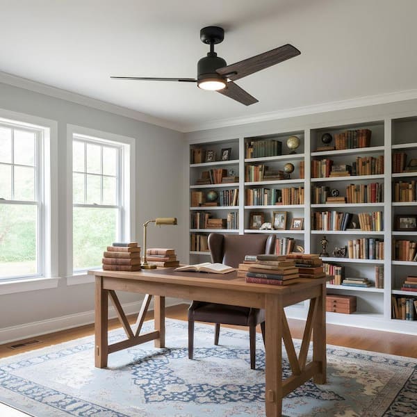 48 in. LED Indoor Black Ceiling Fan with Light Kit, DC Motor and Remote Control