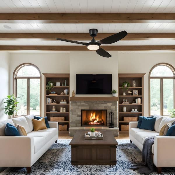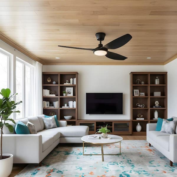 52 in. Integrated LED Indoor Downrod Black Ceiling Fan with Light Kit and Remote Control
