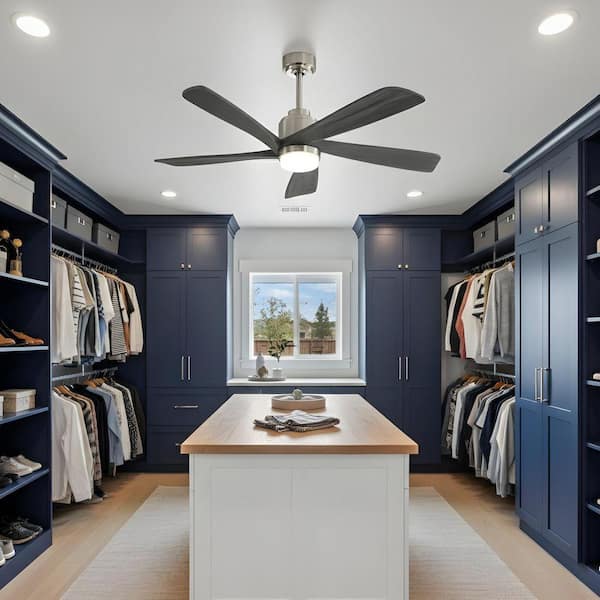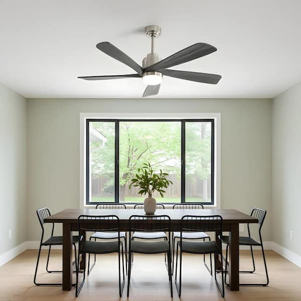 52 in. Integrated LED Indoor Downrod Nickel Ceiling Fan with Light Kit and Remote Control