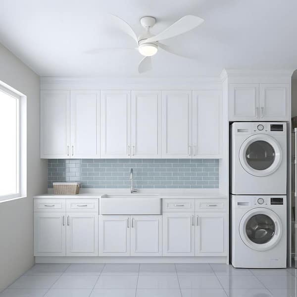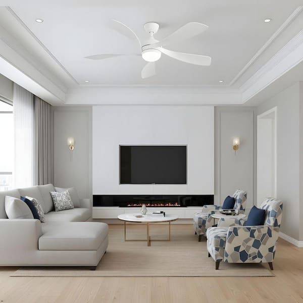 52 in. Integrated LED Indoor Downrod White Ceiling Fan with Light Kit and Remote Control