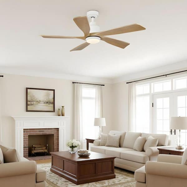 52 in. Integrated LED Indoor Downrod White Ceiling Fan with Light Kit and Remote Control