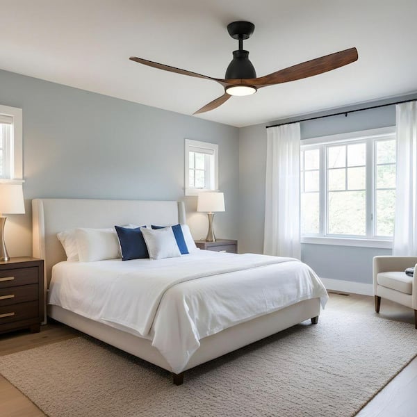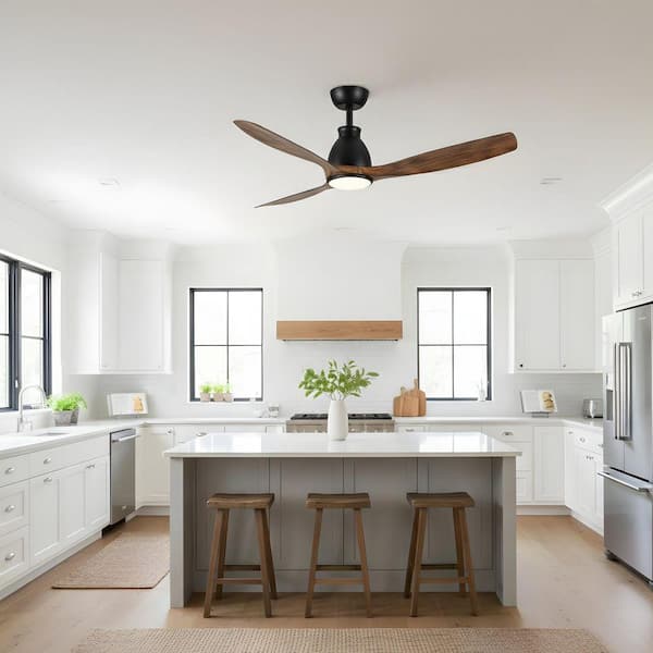 52 in. LED Indoor Black Ceiling Fan with Light Kit, DC Motor, Timer Function