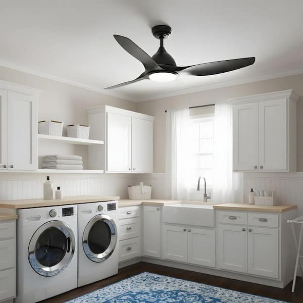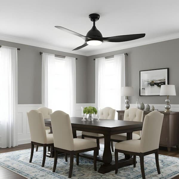 52 in. LED Indoor Black Ceiling Fan with Light Kit, DC Reversible Motor