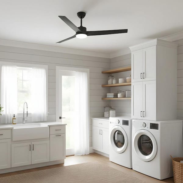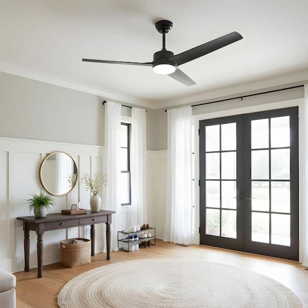 52 in. LED Indoor Black Ceiling Fan with Light Kit, Remote/APP Controls
