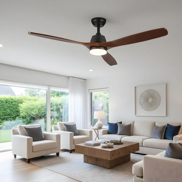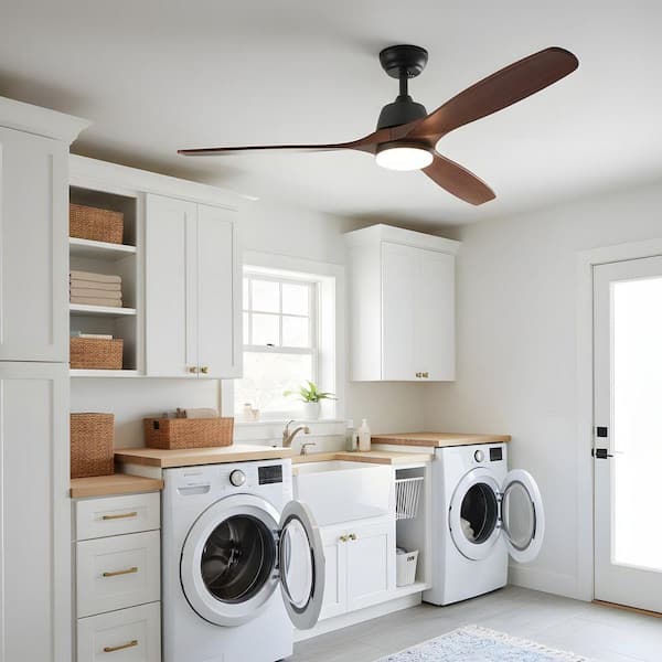 52 in. LED Indoor Black Farmhouse Rustic Ceiling Fan with Light Kit, DC Motor, Timer Function