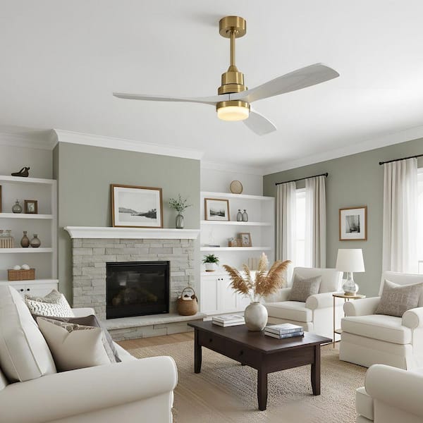 52 in. LED Indoor Gold Ceiling Fan with Light Kit, Remote Control