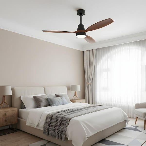 52 in. LED Indoor Walnut Ceiling Fan with Light Kit, Remote Control