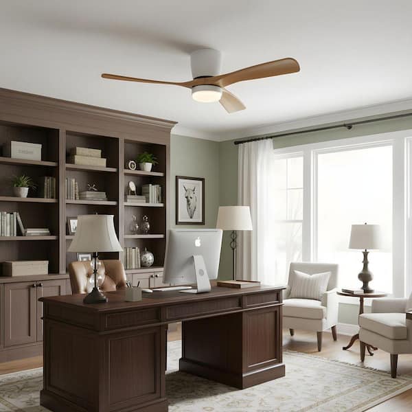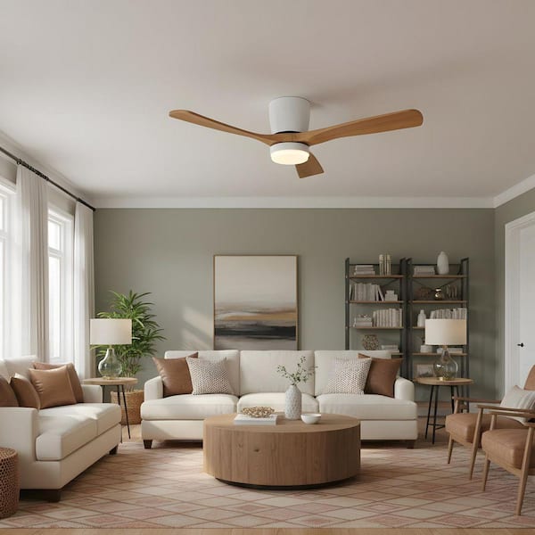 52 in. LED Indoor White Low Profile Ceiling Fan with Light Kit, Remote Control