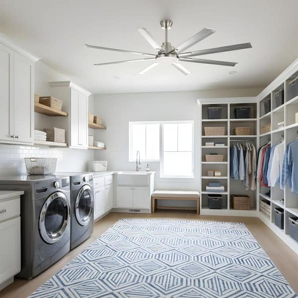 84 in. LED Indoor Nickel Ceiling Fan with Light Kit, Alexa or Google Assistant Compatible