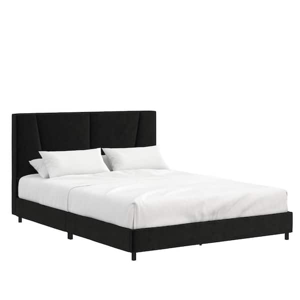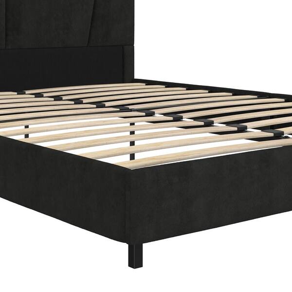 Maverick Upholstered Bed, Queen Size Frame, Black Velvet