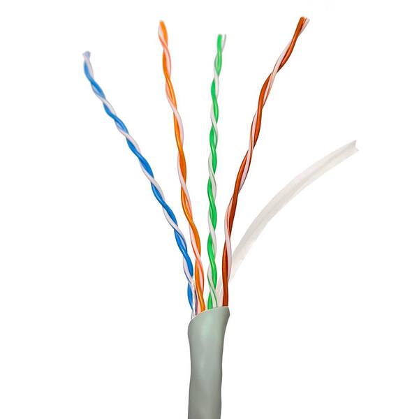 1000 ft. Gray 23 AWG/8 Conductor Solid Copper CAT6 CM Rated Data Cable Pre-Cut