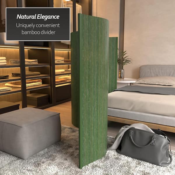 Bamboo Wave 48 in. Distressed Green Room Divider