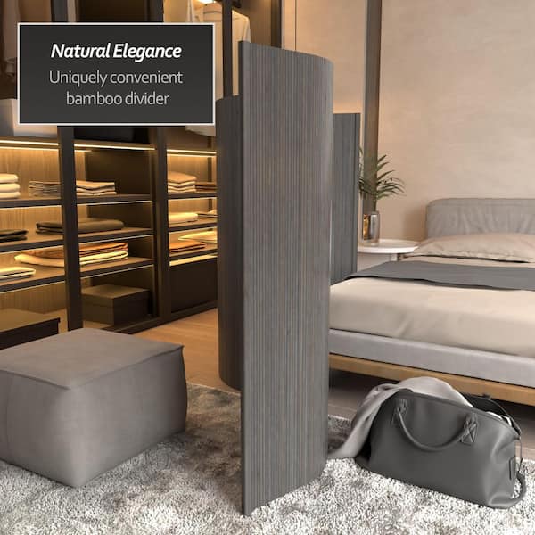 Bamboo Wave 48 in. Grey 1-Panel Room Divider
