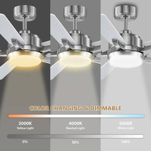 52 in.Smart Indoor Outdoor Silver Ceiling Fans LED Lights and Remote,Controlled by WIFI Alexa App,Quiet DC Motor,6 Speed