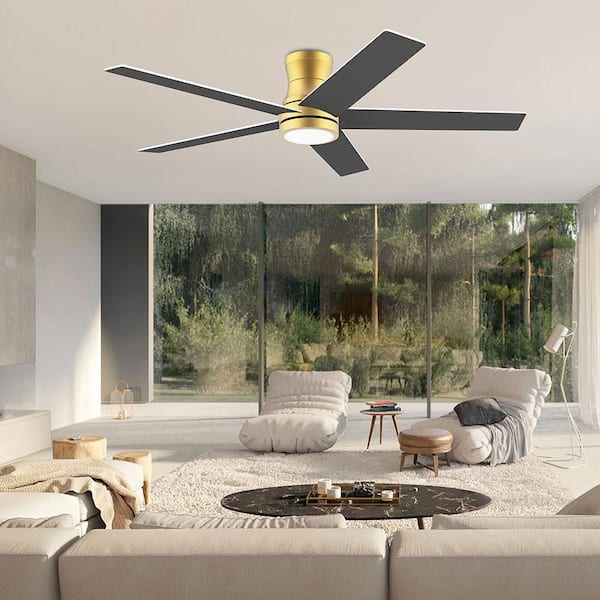 52 in. Smart Outdoor Indoor Flush Mount Ceiling Fan with Lights Remote, Controll by Voice WIFI Alexa App, Quiet DC Motor