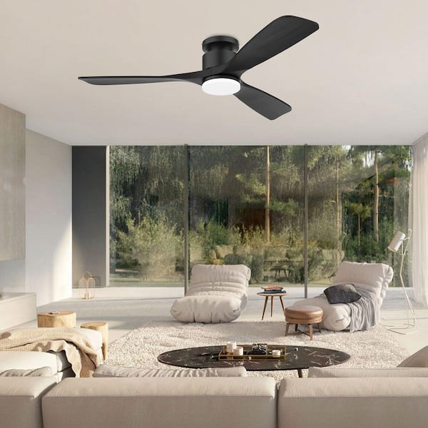 52 in. Smart Outdoor/Indoor Light Wood Flush Mount Ceiling Fans With Lights Remote, Voice Control via WIFI Alexa App