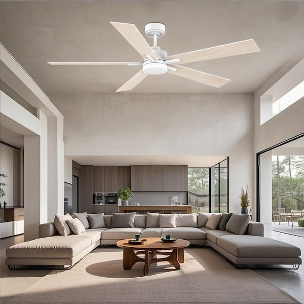 60 in.Smart Outdoor Indoor White Ceiling Fan with Lights Remote,Voice Control via Alexa Google WIFI App,Quiet DC Motor