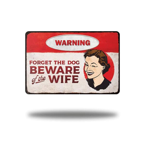 Forget the Dog, Beware of Wife Funny Humor 8 x 12 Metal Wall Art Decorative Sign