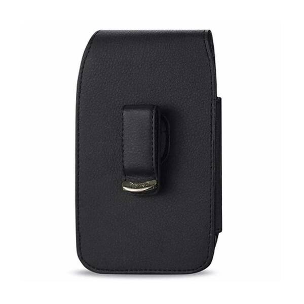 7.0 in. x 3.9 in. x 0.7 in. Leather Vertical Universal Phone Pouch with Metal Logo in Black