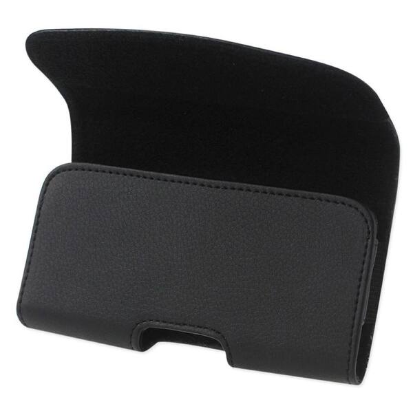Horizontal Leather Pouch With Magnetic Clasp And Metal Logo in Black with Belt Loops and Hoops